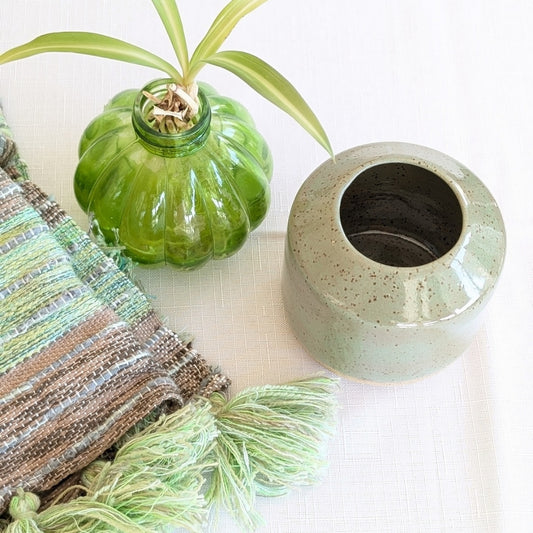Petit vase décoratif en céramique – Vert mousse -Collection Forêt